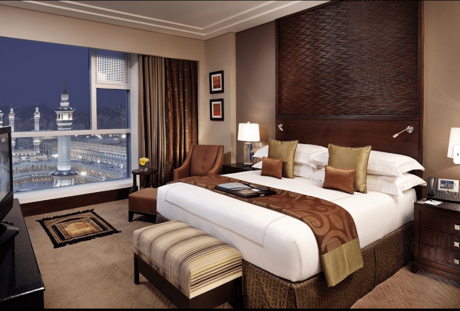 يتوفر هناك حمام داخلي، وكذلك حوض استحمام واسع، بالإضافة إلى أن جميع الغرف تطل على الحرم، أو الكعبة المشرفة.