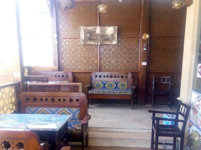 بالإضافة إلى المقاعد المريحة التي تتزين بالزخارف والنقوش.