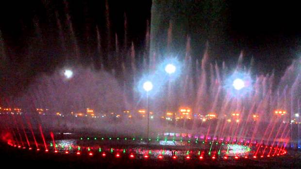 فتتميز هذه النافورة بقدرتها على جمع عدد مختلف من الألوان، بجانب الموسيقى الفريدة ذات الطراز الشرقي.