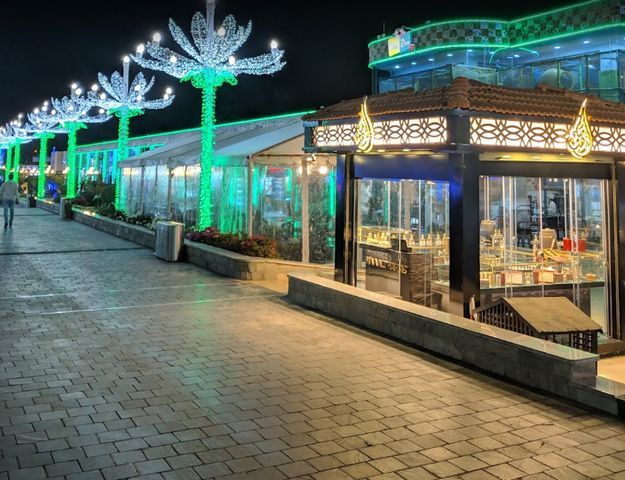 كما يمكن الاستمتاع في الممشى بالجلوس في واحد من المطاعم المتنوعة والمميزة المتواجدة به، أو الجلوس بواحدة من المقاهي المختلفة الراقية التي تتواجد على جانبي الطريق.