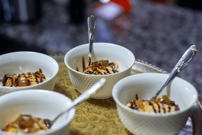 بالإضافة إلى أنه يقدم أشهى الحلويات وأنواع مختلفة من العصائر وسلطات الفواكه الطازجة.