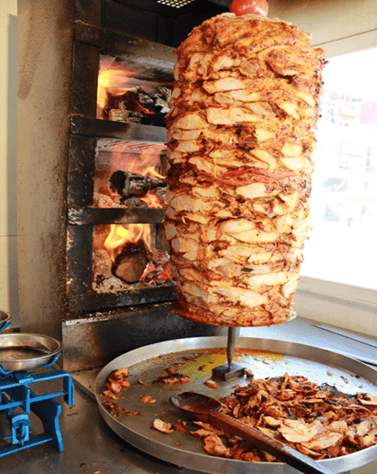 الشاورما التركية تعتبر من الأطعمة المميزة في تركيا، وتعرف باسم الدونر، وهي عبارة عن أكلة تركية شعبية يرجع أصلها إلى عصر الإمبراطورية العثمانية، وتتكون تلك الوجبة من اللحم الأحمر، هذا بالإضافة إلى قطع الدجاج المتبلة بالبهارات التركية، ويتم وضعها على سيخ (مثل ما هو موضح في الصورة) ويتم شواؤها، وتقدم تلك الوجبة في سندويتش أو أطباق، وهي متوفرة في معظم المطبخ التركية.