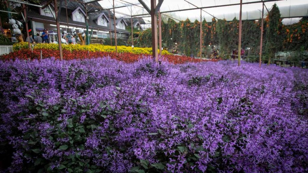 بينما تتعدد الأقسام التي تزين المنطقة بما يتوافق مع ألوان وأنواع الزهور.
